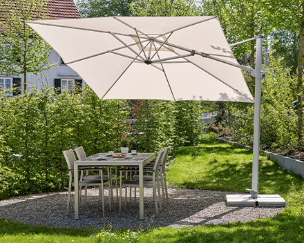 Ampelschirme sind platzsparender als herkömmliche Sonnenschirme und ermöglichen eine flexible Raumnutzung unter dem Schirm. Das Schwenkgelenk kann verstellt werden, sodass Sie einen hohen Schutz vor der Sonne genießen.
