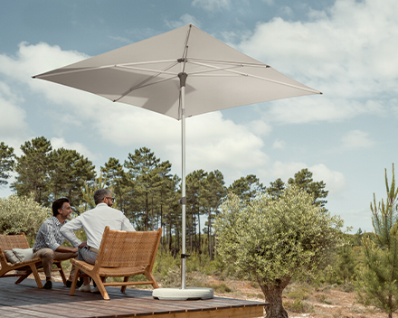 Mit unseren Push-Up Schirmen machen wir es Ihnen noch leichter den Tag auf der Terrasse zu genießen. Ein Knopfdruck genügt, um das Gestell zu lösen, es danach hochzuschieben und den Sonnenschirm ganz leicht zu öffnen.